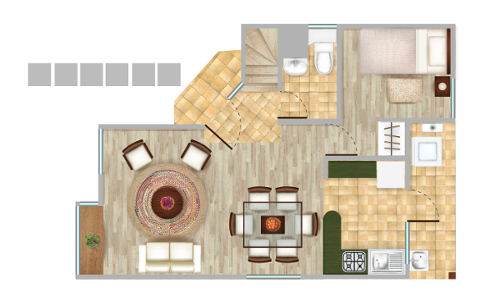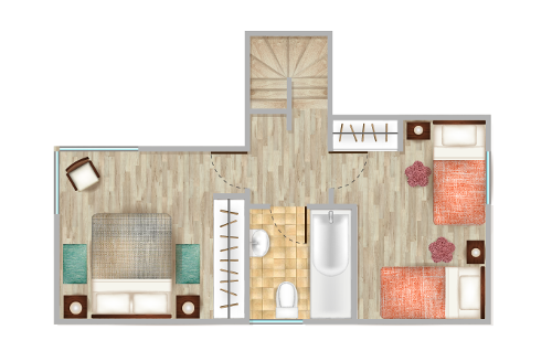 • Piso flotante en dormitorios, living-comedor y circulación.